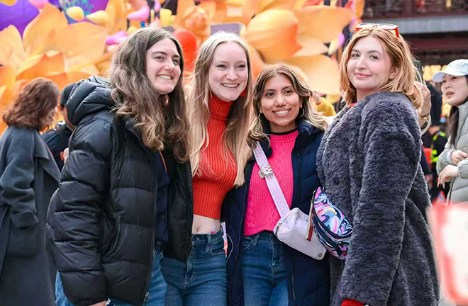 International scholars pose for photos at the Yuyuan Garden in Shanghai during the 2026 Spring Festival. Photo: PROVIDED TO CSST