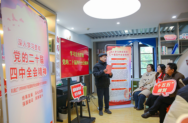 On Dec. 17, 2025, at a community reading room in Rugao City, Jiangsu Province, resident Party members study the spirit of the Fourth Plenary Session of the 20th CPC Central Committee. Photo: IC PHOTO