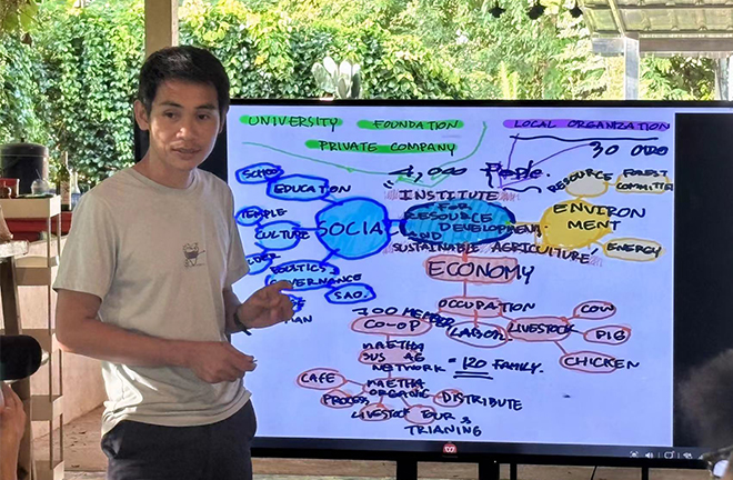 A Mae Tha villager explaining the history and framework of the village’s organic farming system Photo: PROVIDED TO CSST