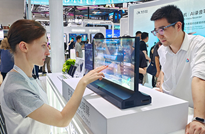 On July 28, 2025, at the World Artificial Intelligence Conference (WAIC) in Shanghai, an AI-powered translation software and hardware developed by a Chinese company attracted numerous foreign visitors to experience the technology. Photo: IC PHOTO