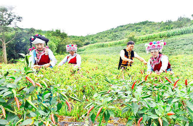 Yi ethnic people in Zhijie Village, Dali Bai Autonomous Prefecture, Yunnan Province, pick chilies in the mountain fields on Sept. 10, 2025. Photo: IC PHOTO
